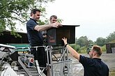 Die Feuerwehr setzte sich vorbildlich für den Naturschutz ein, denn ohne diese Technik ist so eine Montage nicht zu machen.